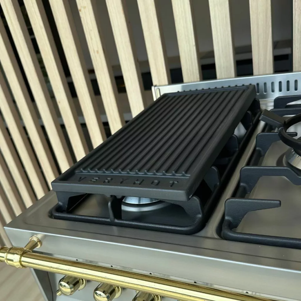 Aquecimento Uniforme e Rápido: O ferro fundido oferece distribuição uniforme do calor, ideal para grelhar e selar cortes de carne com precisão.