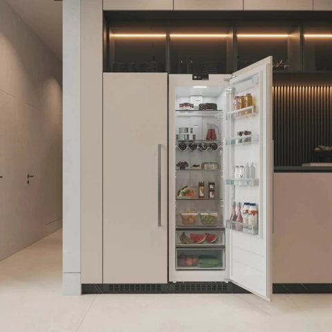 Elegância, Capacidade e Eficiência Energética. dê vida à sua visão de uma cozinha moderna e sofisticada com o Conjunto de Revestir Built-In, apresentando o Refrigerador de Revestir Duo 303 Litros e o Freezer de Revestir Duo 221 Litros da Elettromec. Este conjunto inovador combina um design moderno e minimalista com alta capacidade e eficiência energética, oferecendo um ambiente integrado que redefinirá o estilo da sua cozinha.