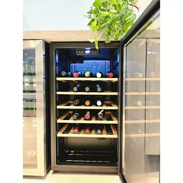 Tecnologia Low-E: garante melhor isolamento térmico, proteção contra raios UV e controle de sudação da porta para melhor preservação dos vinhos.