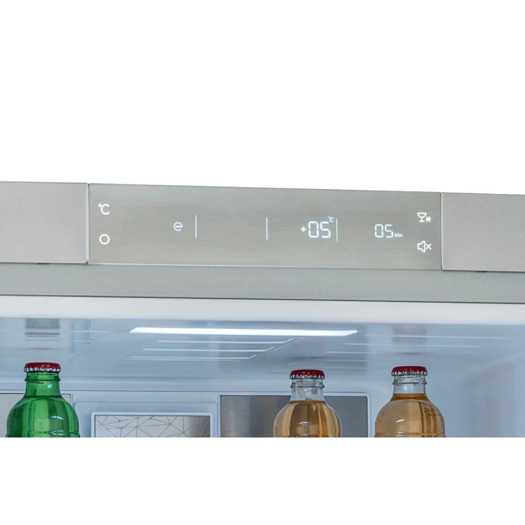Painel Touch Metalizado - Elegante, sem frestas e todo acionado por toque. Facilmente apresenta e controla todas as funções do refrigerador, localizado no topo do compartimento refrigerado.