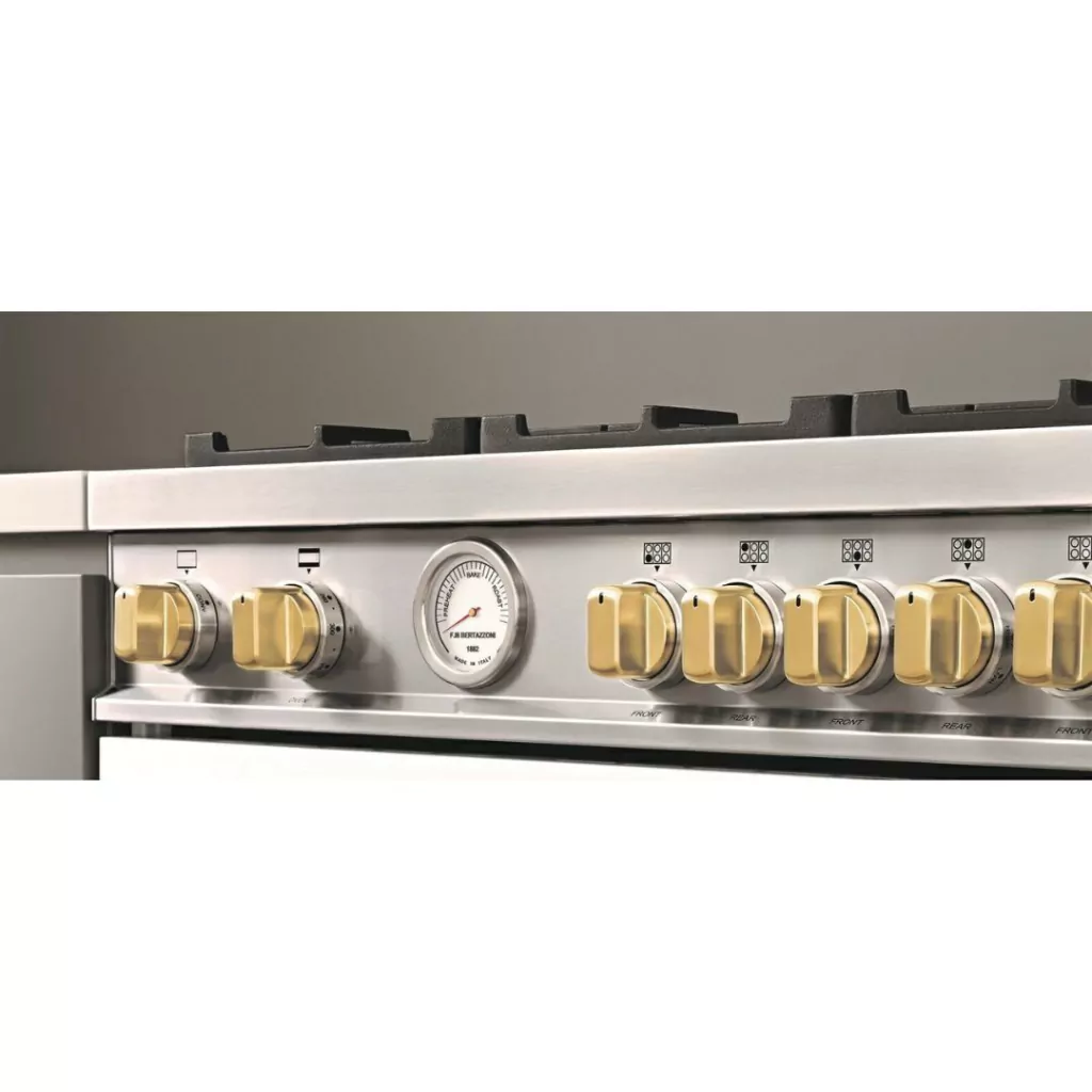 Os componentes banhados a ouro aliados ao design profissional Bertazzoni criaram um fogão que exibe o máximo em refinamento e sofisticação para projetos de cozinhas únicos, que deslumbram os olhos e o paladar.