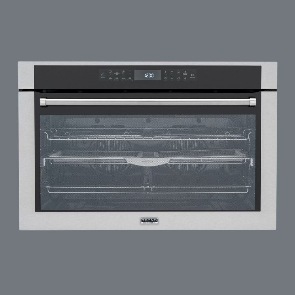 Este forno também possui um potente grill infravermelho para desfrutar de churrascos suculentos, grelhados deliciosos e gratinados apetitosos, preparados de forma rápida e controlada. Seu painel acionado por toque oferece uma utilização fácil e intuitiva de todas as funções do forno, garantindo uma experiência culinária prazerosa. Além disso, o Forno Tecno Professional é projetado para combinar com outros produtos da linha Professional, apresentando puxadores tubulares em inox escovado e um design elegante e robusto.